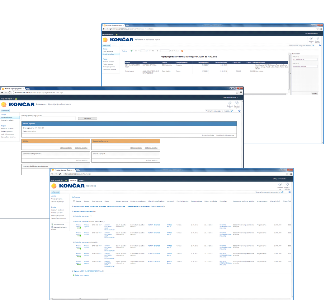 Rješenje omogućuje stvaranje, objavu i odobrenje referenci. Popis referenci uključuje sve ostvarene reference. Klikom na naziv reference otvaraju se pojedinosti o referenci.